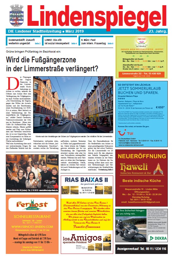 Die Planungen der Region Hannover, in der Limmerstraße Hochbahnsteige errichten zu wollen, nahmen die Grünen zum Anlass über eine Verlängerung der Fußgängerzone nach Norden nachzudenken. „Die Entscheidung der Region, gegen den Willen der Anwohnenden und des Bezirksrates, einen Hochbahnsteig vor EDEKA zu setzen, führt faktisch zu einer Verkleinerung der Bestandsfläche der Fußgängerzone,“ erklärt Daniel Gardemin, Fraktionsvorsitzender der Grünen im Bezirksrat. „Wenn jetzt Cafés ihr Außenmobiliar wegräumen müssen, Bäume gefällt werden und Platz zum Schlendern und Verweilen verschwindet, ist es nur folgerichtig, über eine Kompensation im Sinne einer Ausweitung der bisherigen Fläche nachzudenken.“