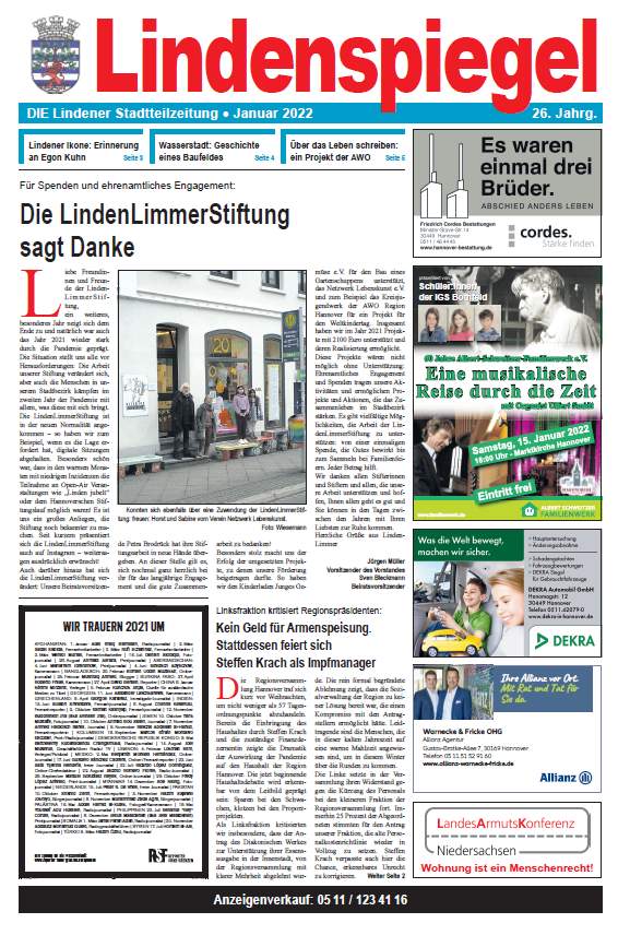 – Di und Do, 10-16 Uhr, Senioren- und Pflegestützpunkt Calenberger Land, Löwenberger Straße 2a